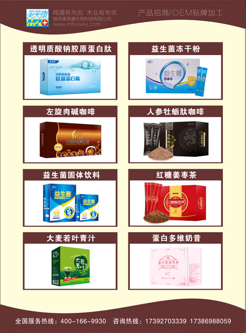美芙康集團(tuán)利用強(qiáng)大的研發(fā)實(shí)力和自有的生產(chǎn)基地優(yōu)勢(shì),根據(jù)各地經(jīng)銷商的需求,定制區(qū)域化OEM特色產(chǎn)品,擁有專業(yè)的研發(fā)團(tuán)隊(duì)和大型的全自動(dòng)生產(chǎn)廠房,年生產(chǎn)各類功能性食品200余種,1000余個(gè)品規(guī),產(chǎn)品通過(guò)SC認(rèn)證、ISO9001質(zhì)量體系認(rèn)證等多項(xiàng)認(rèn)證,多名教授和專家共同研發(fā)。
