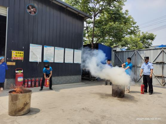 張警官講解后,對滅火器進行了現(xiàn)場演示操作,并嚴(yán)格要求所有人員都進行實操,確保使用正確快速。