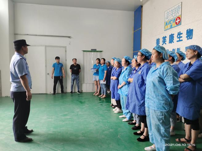 本次演練邀請到了勵志東路派出所張警官現(xiàn)場指導(dǎo)并講解。美芙康集團董事長呂東豐先生帶領(lǐng)廠部所有工作人員認(rèn)真學(xué)習(xí)和配合。