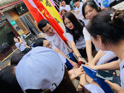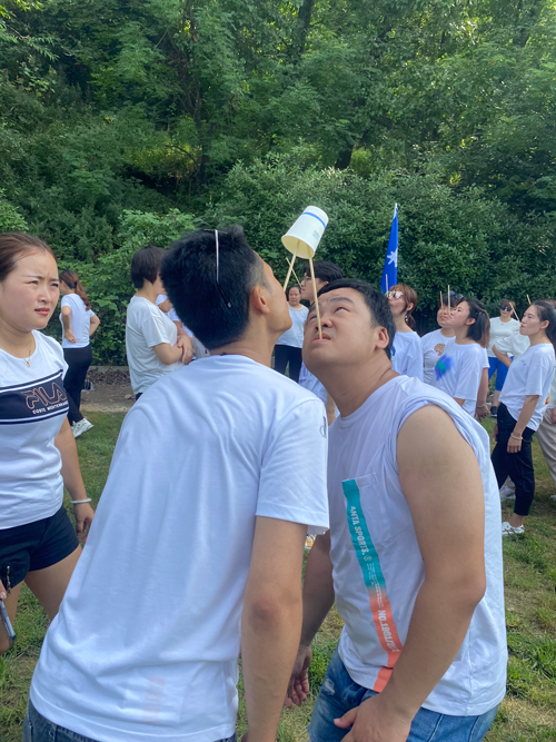 訓(xùn)練比賽前大家圍成一個(gè)圈,相互介紹自己,了解彼此。項(xiàng)目由“熱烈拔河”、“兩人三足”、“筷子傳杯”和“雙人協(xié)力夾氣球”四個(gè)組成,采取積分制方式進(jìn)行。