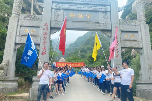 大家有說有笑,雖然是大汗淋漓的爬山,但是一點(diǎn)也不感覺累,40多分鐘的步行終于到達(dá)了金仙觀。金仙觀是道教七十二福地第一福地,道教全真派道觀。道觀始建于西漢漢文帝時(shí)期,名曰玄都壇,金仙即“金剛不壞之仙”,是道教神仙的稱謂。因道教神仙起源于西部的昆侖山和西王母,西方屬金,故名金仙。金仙觀整個(gè)的建筑群依山而建,坐南靠北,中軸對稱,層層遞進(jìn),負(fù)陰抱陽,背山面水,氣勢非凡。