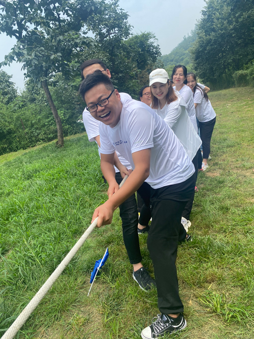 在第一個(gè)項(xiàng)目“熱烈拔河”中各隊(duì)隊(duì)員共同協(xié)作,不斷突破自我,勁往一處使,心往一處想,展現(xiàn)了團(tuán)隊(duì)的力量,也加深了隊(duì)員們之間的信任。