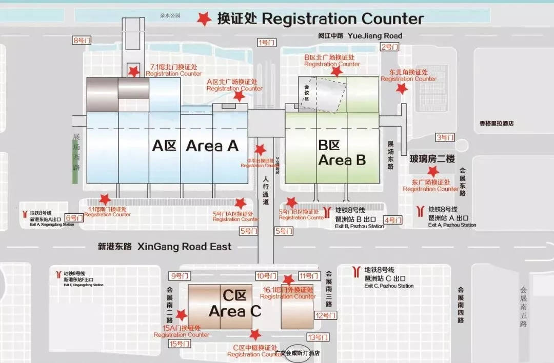 展館C區(qū):地鐵8號線琶洲站C出口