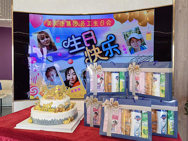 接下來(lái)生日會(huì)在主持人熱情響亮的問(wèn)好聲中拉開(kāi)了序幕,為壽星們送去了溫馨的祝福,美芙康集團(tuán)總經(jīng)理王芙女士表示:關(guān)愛(ài)員工,給員工以家的溫馨,是企業(yè)的應(yīng)盡之責(zé),通過(guò)這樣的集體活動(dòng),可以放松員工的心情、減緩壓力,也增進(jìn)了同事們之間的交流,融洽了彼此關(guān)系。2022年希望大家團(tuán)結(jié)一心,再創(chuàng)佳績(jī)!同時(shí)也為壽星們送上精美的生日禮品,并致以誠(chéng)摯的問(wèn)候,祝福壽星們生日快樂(lè)、事業(yè)進(jìn)步、生活幸福!