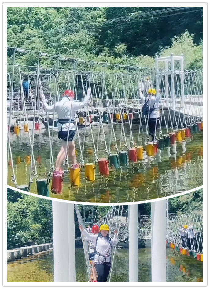 多種驚險(xiǎn)刺激的水上項(xiàng)目,是這次團(tuán)建活動(dòng)中最心潮澎湃的體驗(yàn)了。大腳丫、滑索過澗、緬甸橋、抽板過河、浮樁橋、臨空漫步、高空滑索.....每一項(xiàng)都讓你心潮澎湃,不虛此行。一旦開始便不能停歇,一鼓作氣才能到達(dá)彼岸。讓你隱于終南山寨,樂于山水之間,切身感受到山野間的透心涼心飛揚(yáng) ,這是勇敢者最愛的游戲……