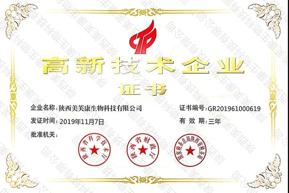 陜西美芙康生物科技有限公司,經(jīng)審核,榮獲《
